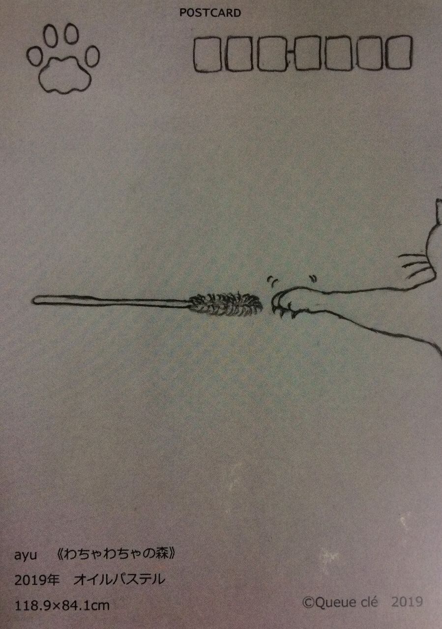 裏面はセピアカラーで、猫じゃらしを取りたいねこさんのイラストを描いています。